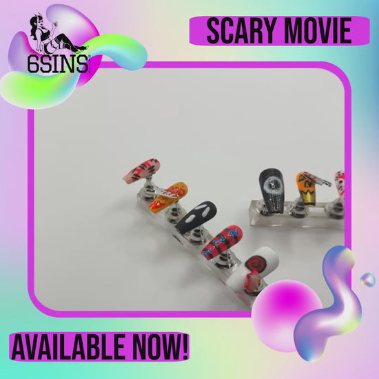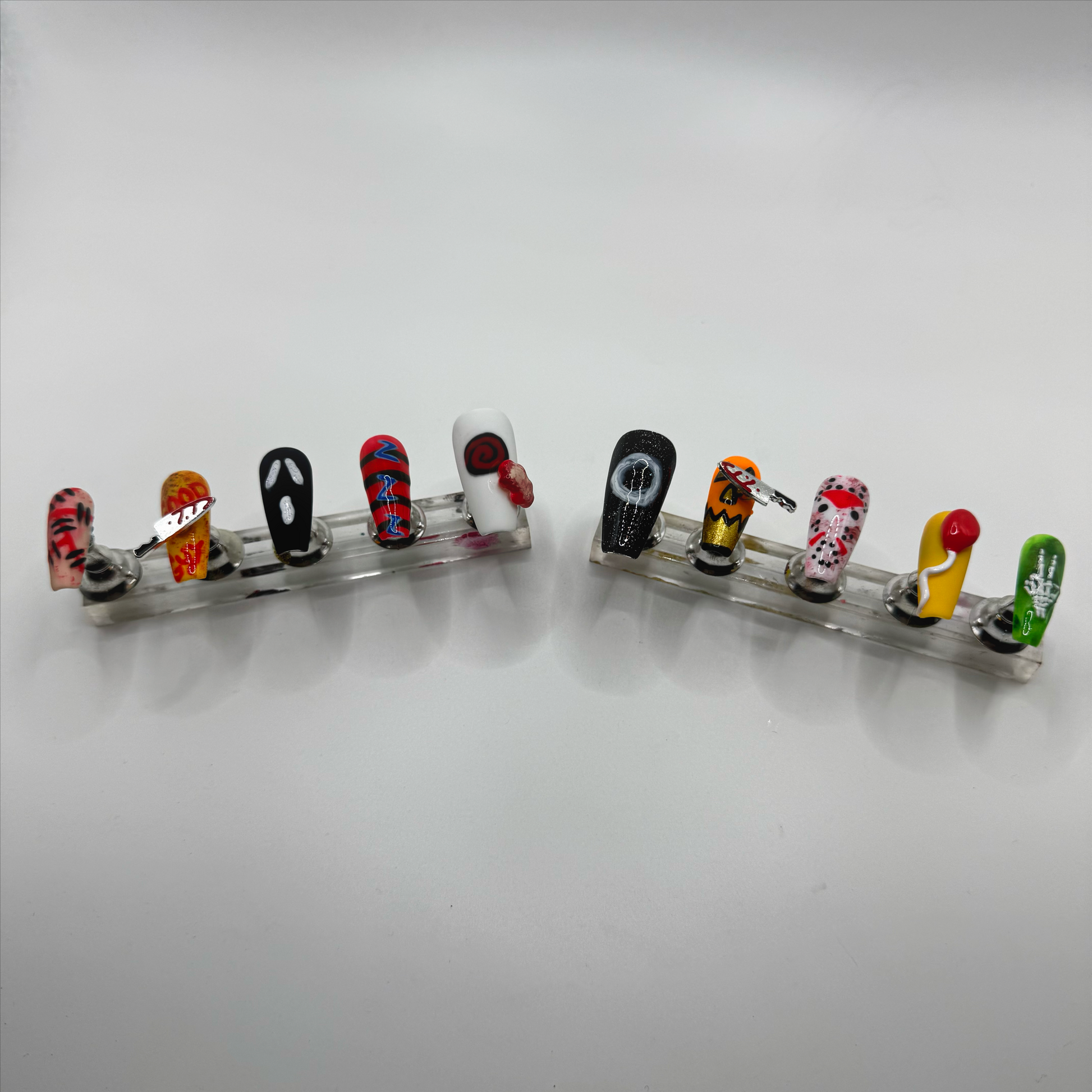 Set Shown Description: A set where each nail represents one of our favorite scary movies or spooky characters...