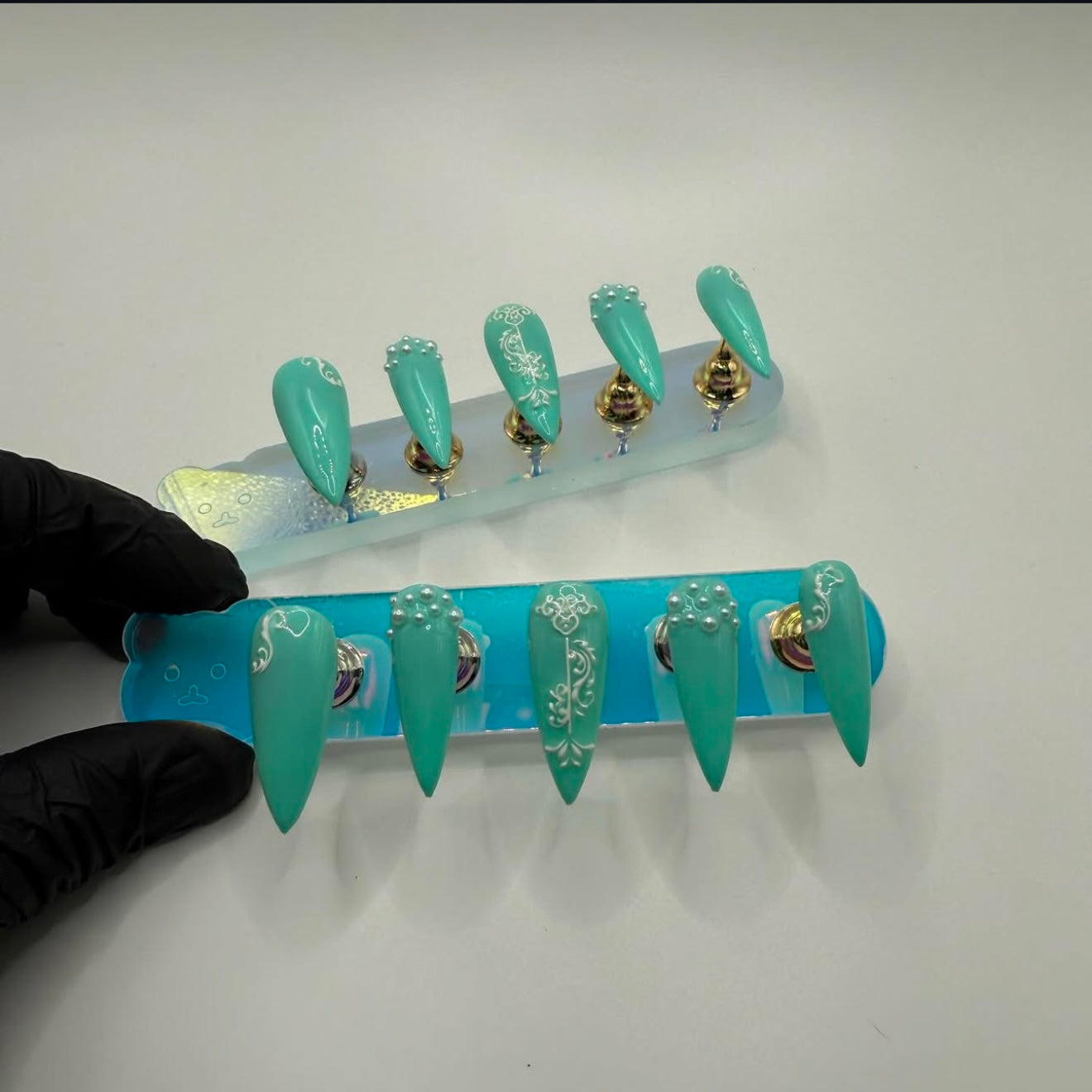 Custom, Quality, Unique, & Affordable. Always Handmade with Love. Each set is hand painted nail by nail - with base, builder, polish, and top coats .