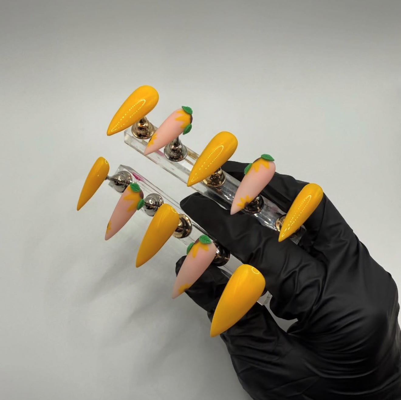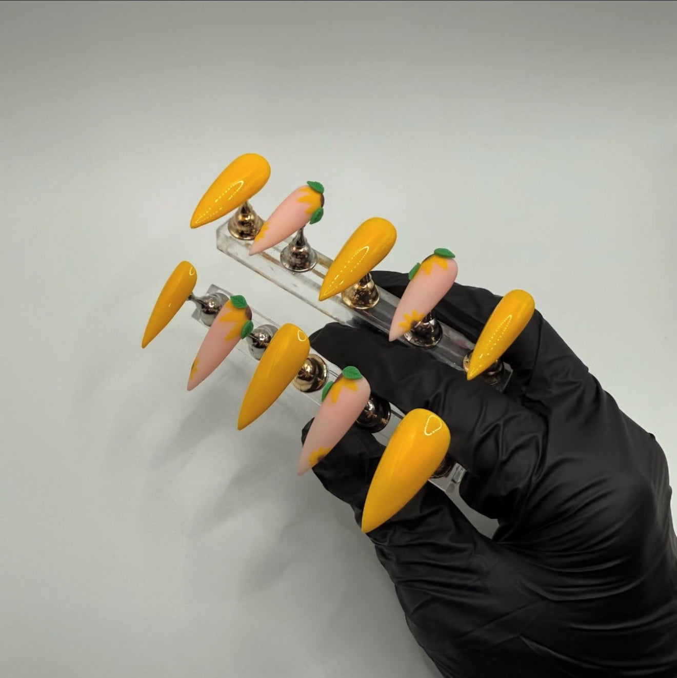 Set Shown Description: Yellow Glossy nails with Pink Nude Matte/Sunflower+3D leaf accent nails